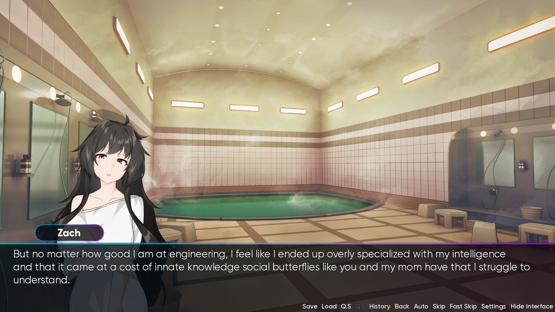 Overnight, Zach/Zoey became my favourite gender-bender protagonist. I didn't expect this of a game I downloaded just for gender-bend NSFW. Zach/Zoey's intelligence was conveyed very well in both his dialogue and inner monologue (I was playing with high Emotionality and Self-Esteem).